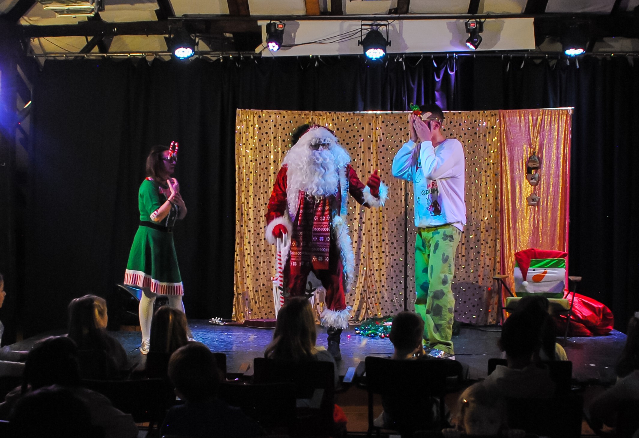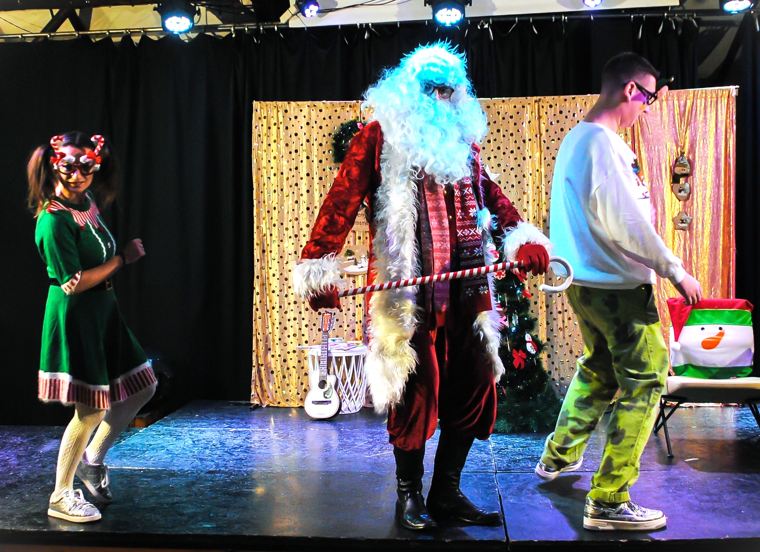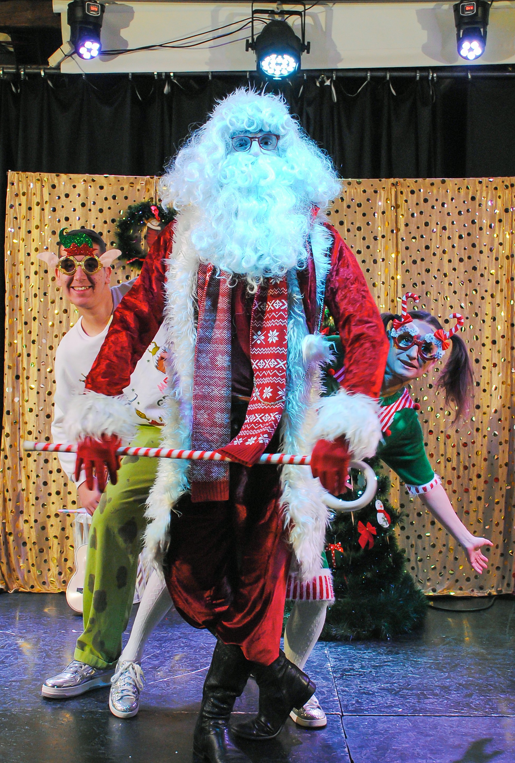 ВЕСЕЛИОТ ДЕДО МРАЗ е претстава која нуди забава, игра и смеа, но при тоа, не изоставувајќи ги и едукативните моменти. Ова е еднa од ретките Новогодишни претстави, во кои Дедо Мраз е присутен на сцената од почетокот па се до крајот на претставата. Интерактивниот пристап на актерите од оваа претстава, подразбира и комуникација на Дедо Мраз со публиката/дечињата, што значи многу често обраќање и консултирање со нив, за тоа како заеднички да се справат со големиот проблем со кои се соочуваат пред самата Новогодишна ноќ и како да се надминат досегашните недоразбирања.