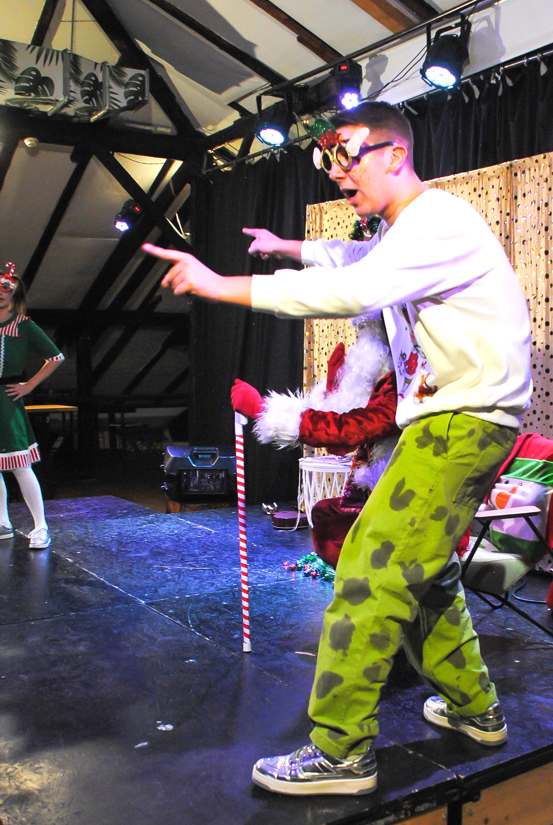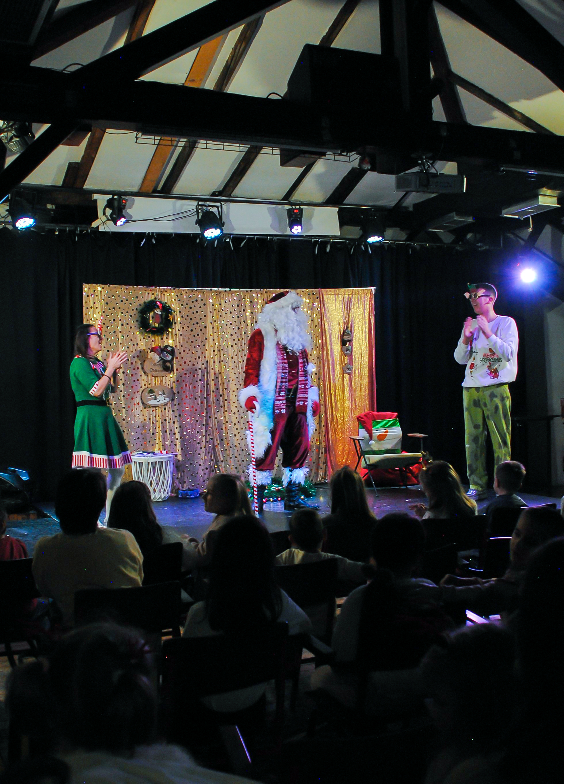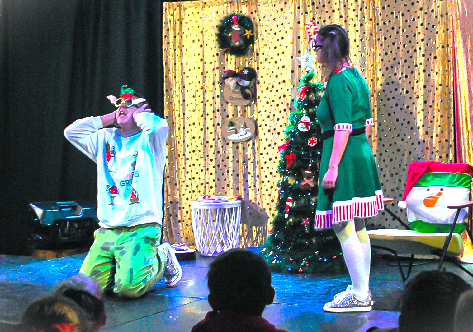 ВЕСЕЛИОТ ДЕДО МРАЗ е претстава која нуди забава, игра и смеа, но при тоа, не изоставувајќи ги и едукативните моменти. Ова е еднa од ретките Новогодишни претстави, во кои Дедо Мраз е присутен на сцената од почетокот па се до крајот на претставата. Интерактивниот пристап на актерите од оваа претстава, подразбира и комуникација на Дедо Мраз со публиката/дечињата, што значи многу често обраќање и консултирање со нив, за тоа како заеднички да се справат со големиот проблем со кои се соочуваат пред самата Новогодишна ноќ и како да се надминат досегашните недоразбирања.