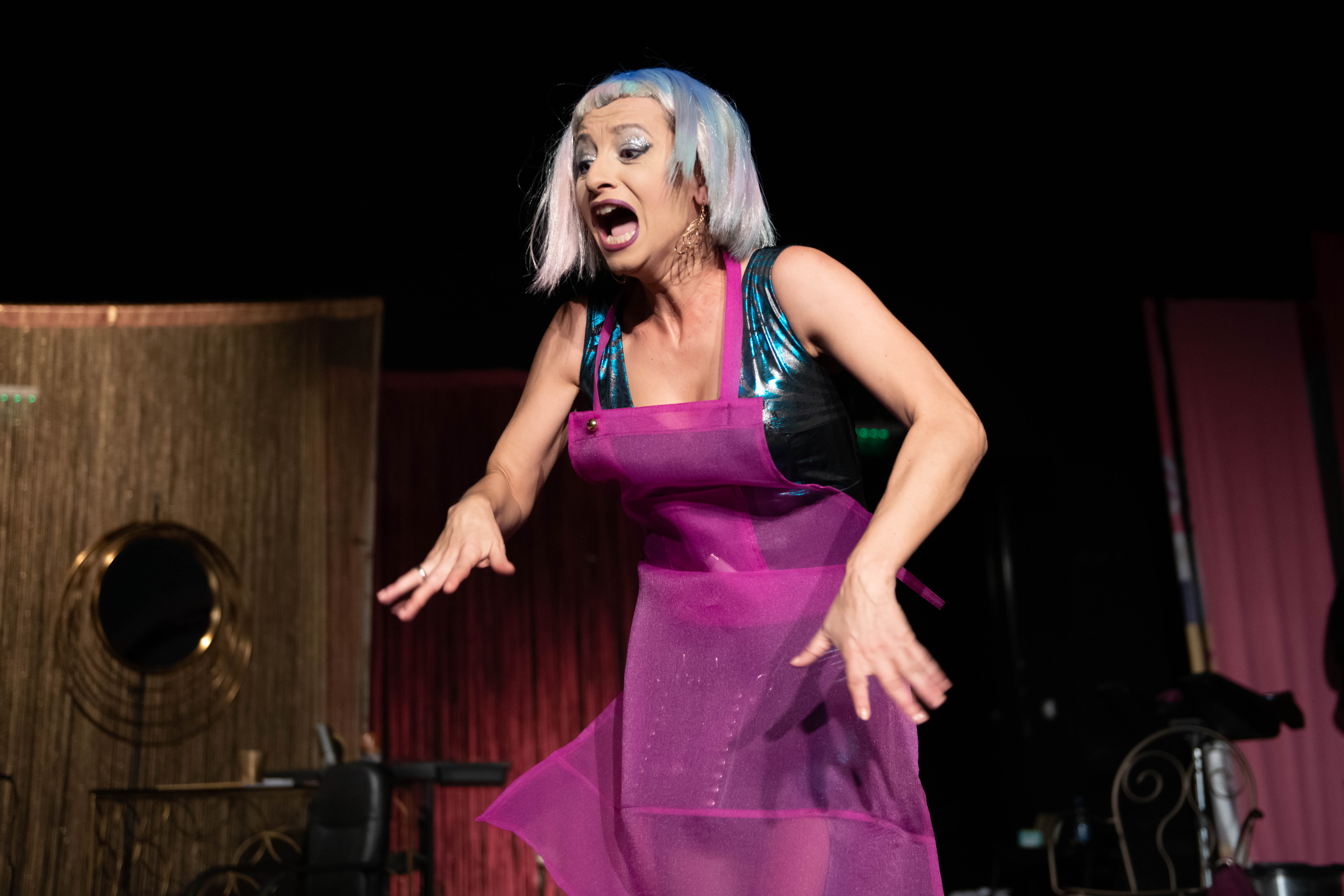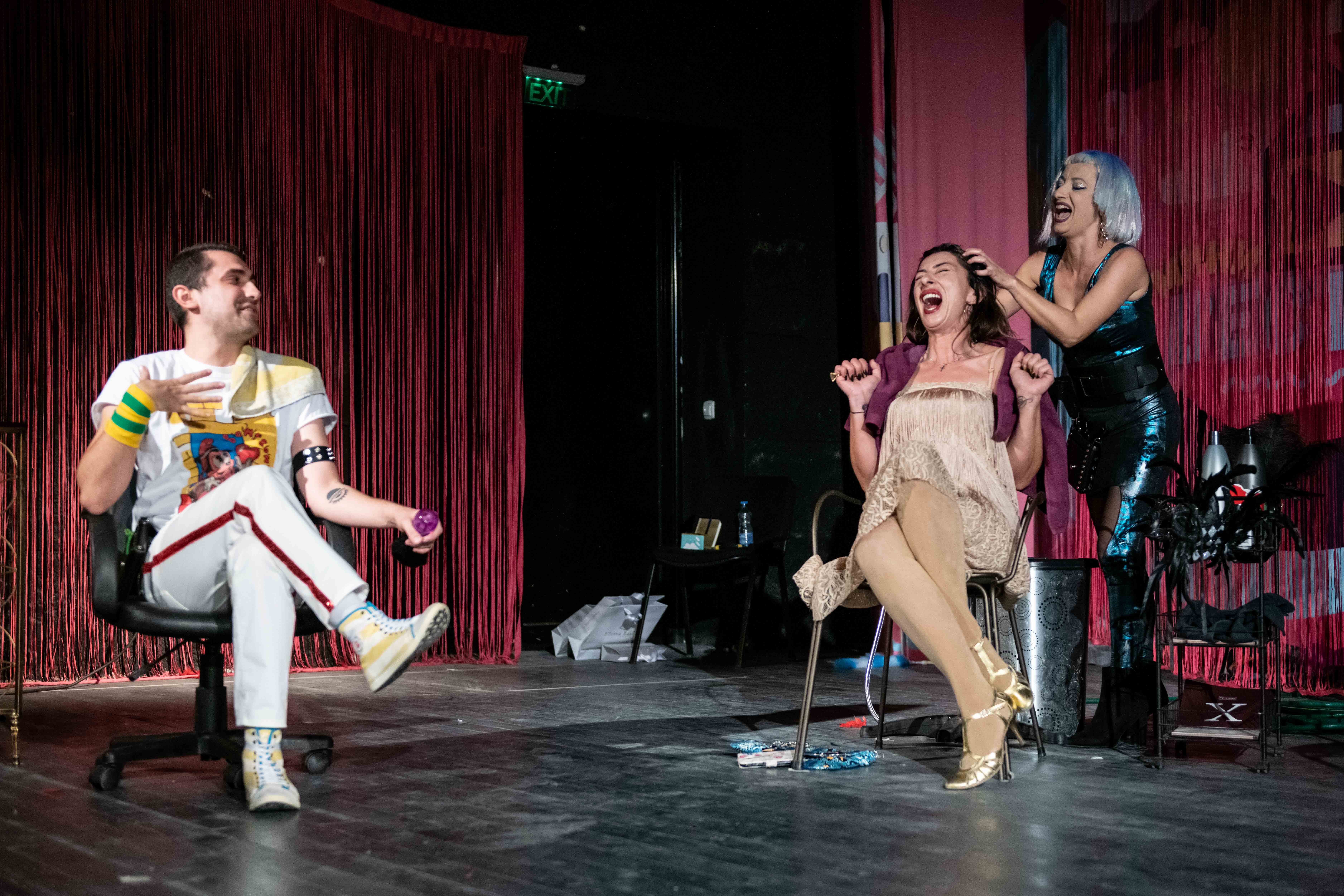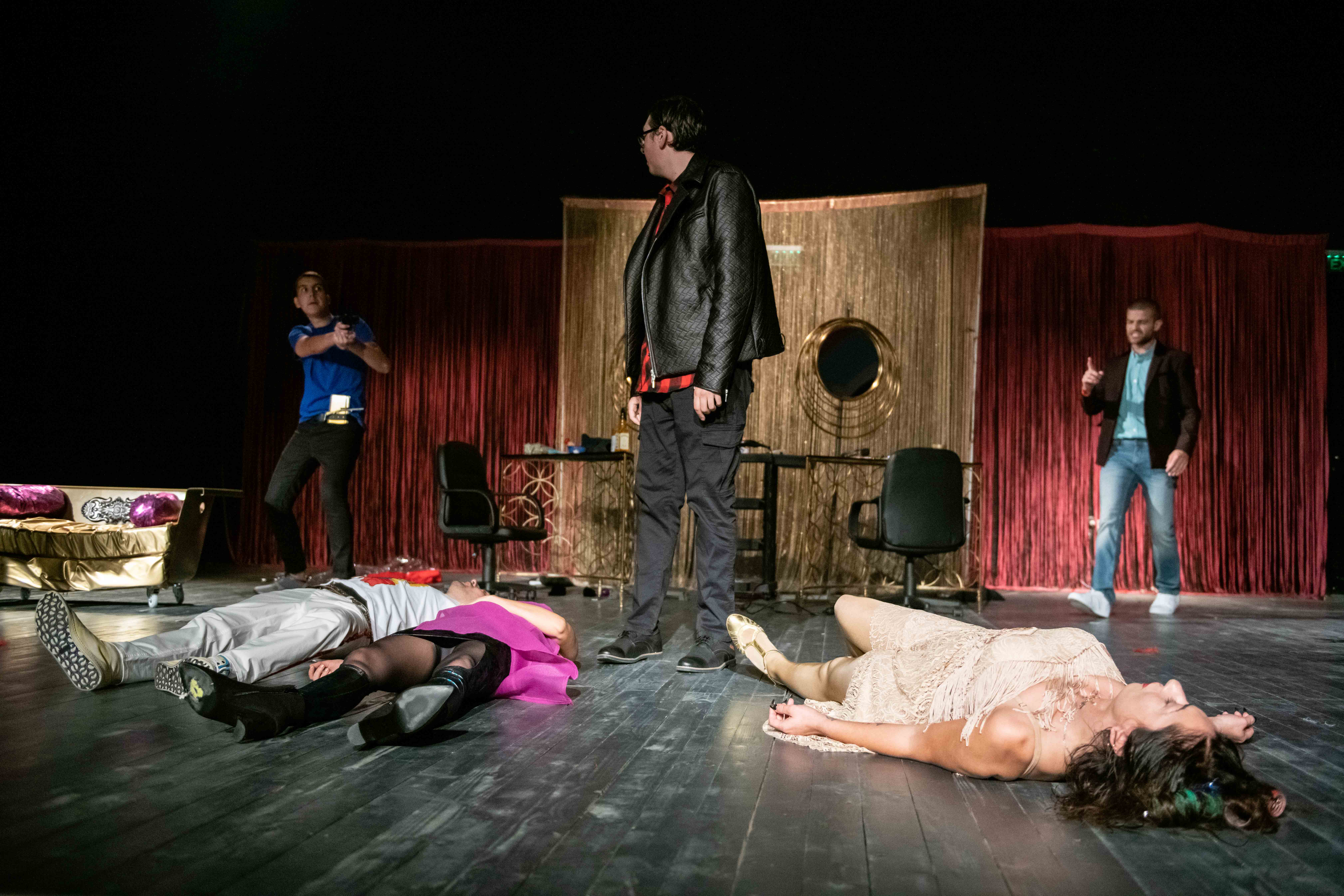 Дејствието на претставата се случува во фризерскиот салон на Гоги Камчев, во кој навидум започнува еден обичен ден.... Се водат „обичните“ муабети, специфични за во фризерските салони, се до моментот кога фризерката Диди ќе влета шокирана и извести дека познатата пијанистка, а воедно и газдарица на салонот Лена Вагнер, е мртва. Полицијата настапува на сцена! Присутните во салонот се единствените осомничени за скандалозното убиство, извршено со ФРИЗЕРСКА НОЖИЦА. Публиката има за задача да помогне во разоткривањето на убиството и го пронајде убиецот.
