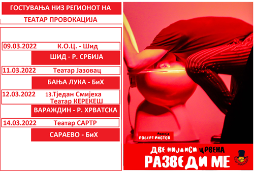 Театар Провокација со претставата РАЗВЕДИ МЕ во режија на Роберт Ристов, во месец март ќе гостува во неколку тетари низ Регионов.